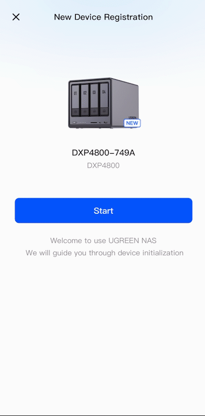 Ensure the NASync device and your mobile phone (or tablet) are on the same LAN network, then open the "UGREEN NAS" App. The App will automatically search for and display available NASync devices on the same LAN network. You can also add a device by scanning the QR code on the bottom of the device. Select the device you want to add, click "Register", and your NAS device will be added successfully.