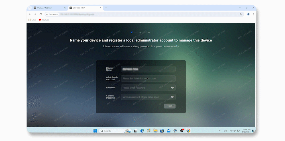 After adding the NASync device, you will be directed to the device initialization interface. Please complete the following steps: