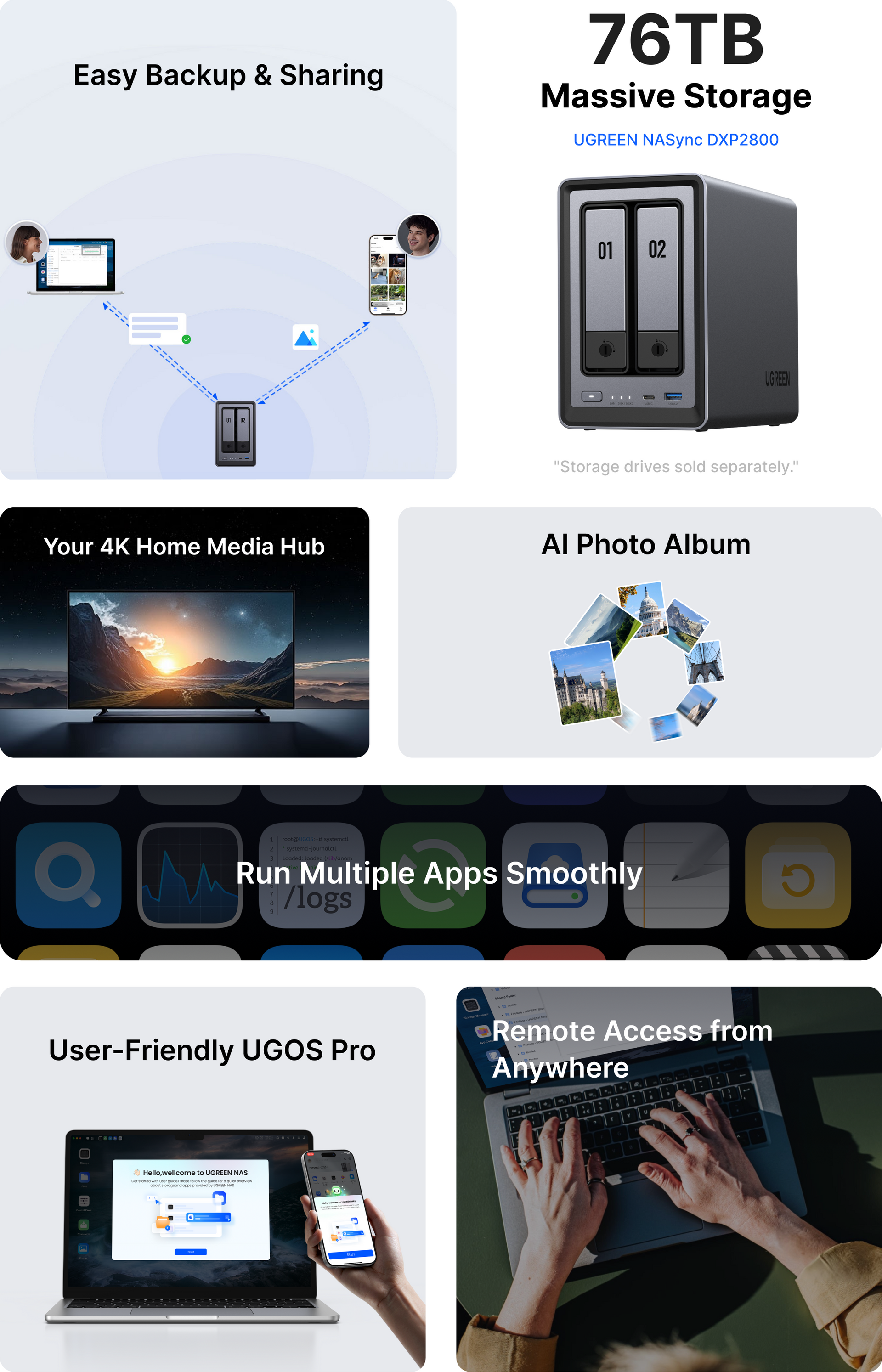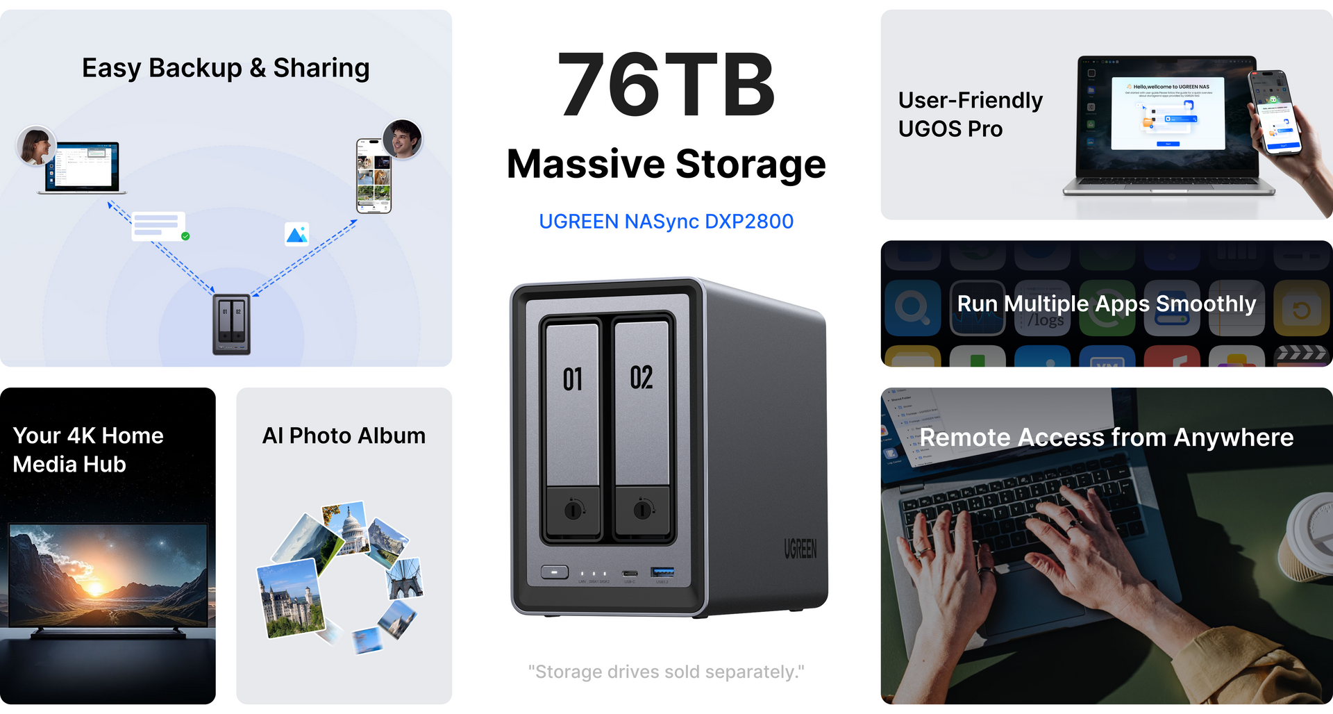 - 76TB Massive Storage: Backup everything + auto photo albums & home cinema.