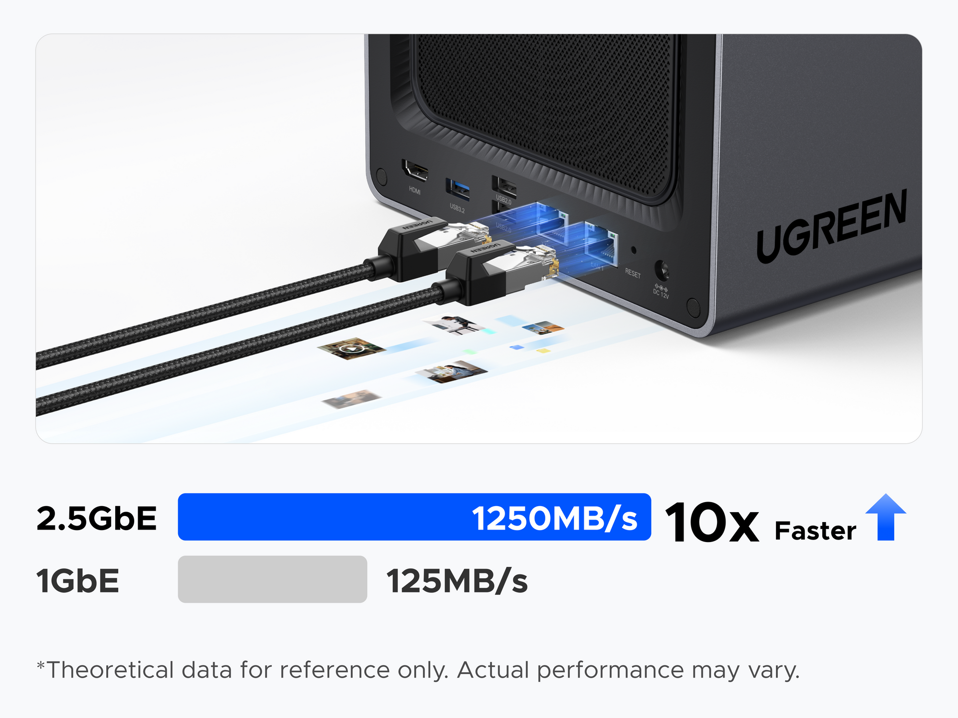- Ultra-Fast Transfers: Backup 1GB in <1s via 10GbE port (+ extra 2.5GbE).